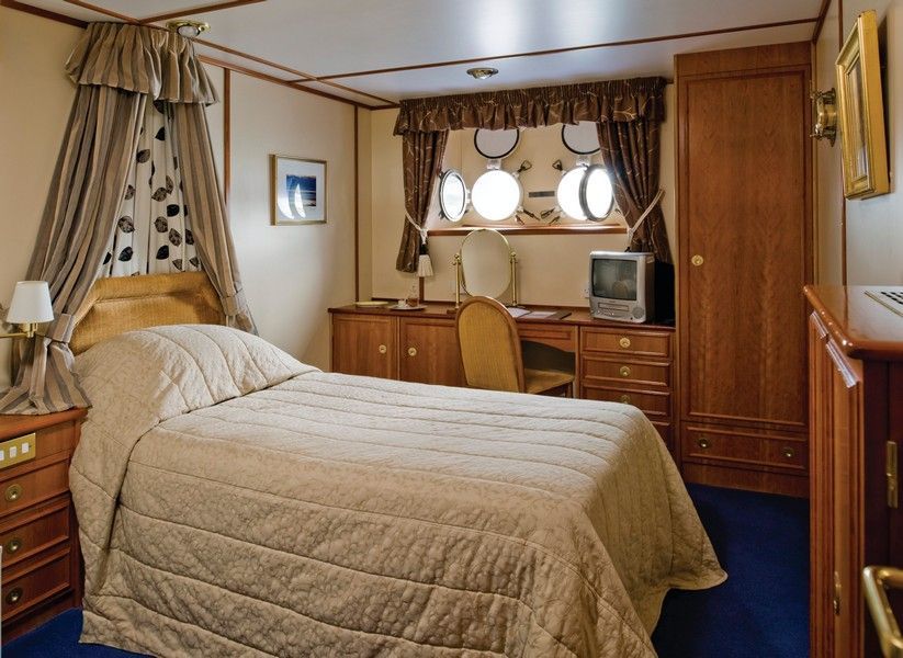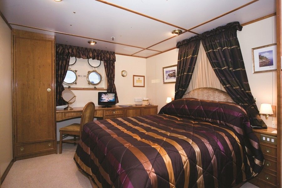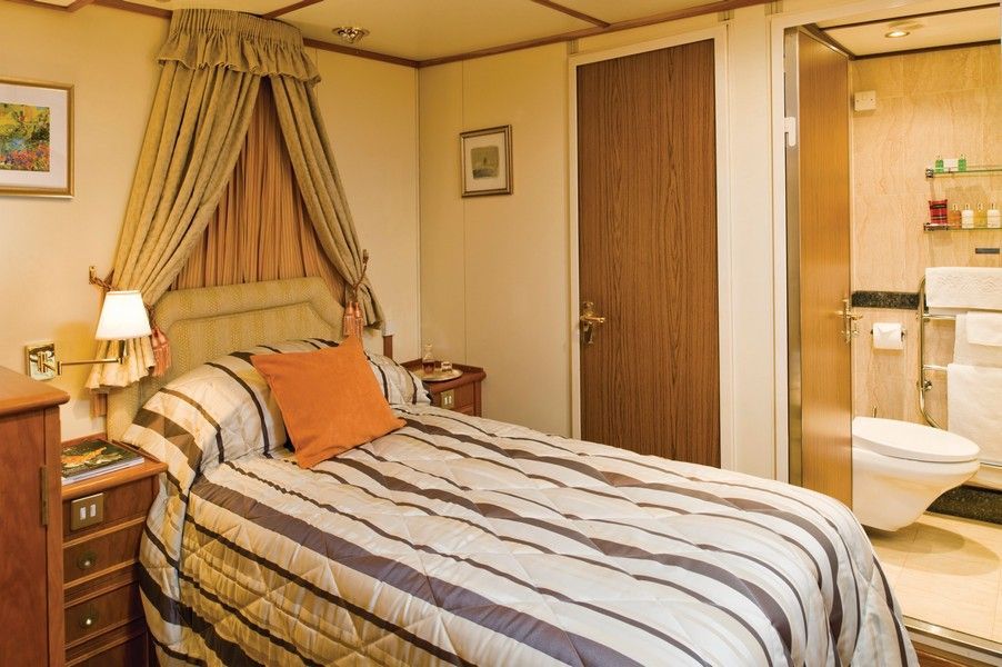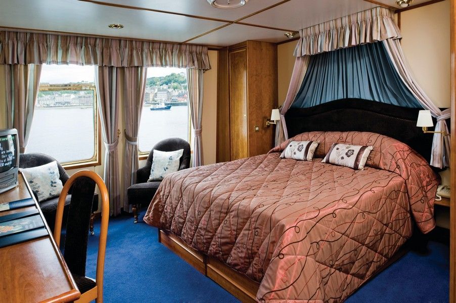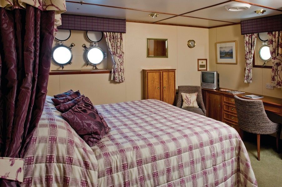 The ship has 30 individually styled cabins, many named after Scottish isles and castles. Several single cabins are available with no supplement.