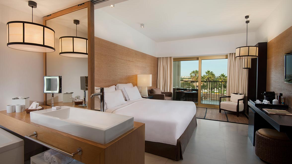 All 280 rooms and suites have been given the full Anantara treatment, recently refurbished in a fresh and contemporary style. All rooms have air conditioning, a private balcony with day bed, bathroom with separate bath and rain shower, flat screen TV, iPod docking station, WiFi and a Nespresso machine. Choose between views of the gardens, pool or golf course, with interconnecting options available for families. The suites come with the services of a butler, and suite guests will also enjoy an exclusive daily à la carte breakfast at the Emo restaurant. The Victoria Suites have a separate dining area and a second bathroom, while the opulent Presidential Suite has a rooftop deck with sofa, loungers, dining table and a Jacuzzi, plus a Bang & Olufsen sound system and a lavish bathroom with whirlpool bath.