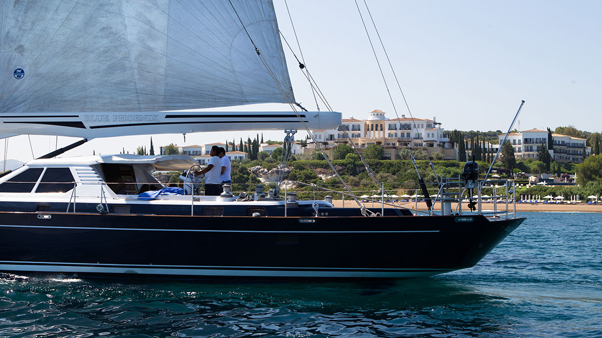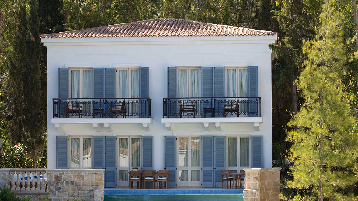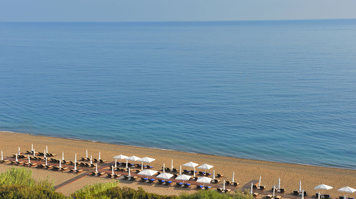 There are 166 air-conditioned rooms, suites and villas, each with a balcony/terrace with chairs and a table, flat screen TV, DVD player, WiFi and mini bar. Some also have a sun terrace with private pool and spectacular sea views. There are rooms and suites to suit families, including interconnecting suites, two- and three-bedroom suites and large villas which sleep up to nine people. Villas are beautifully designed in classic Mediterranean style; Andromeda is the largest and has three en suite bedrooms with balconies, a large infinity pool and sea-view sun terrace. All villas also come with a welcome bottle of Champagne, in-room bar, daily fruit selection and daily treats and local specialities from the chef.