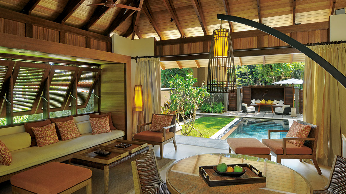 The 313 rooms, suites and one-, two- and three-bedroom villas are decorated in a contemporary style, featuring luxurious fabrics and natural tones to blend with their beautiful surroundings. All accommodation is air conditioned and equipped with a flat screen TV, tea/coffee making facilities, mini bar and complimentary WiFi. Tropical Garden View Rooms are set within the lush gardens whilst the more spacious Junior Suites are just a few steps from the South Beach and have an indoor seating area as well as a furnished outdoor terrace. Larger Senior Suites are set back from the North Beach with beautiful garden views. Each of the resort’s 47 stunning villas boasts a spacious living area and a private swimming pool; One and Two Bedroom Hillside Villas overlook Port Launay Marine Park whilst Beach Villas are closer to the picturesque North Beach. For larger families, Two and Three Bedroom Family Villas offer one or two king-bedded rooms and a twin-bedded room for children.