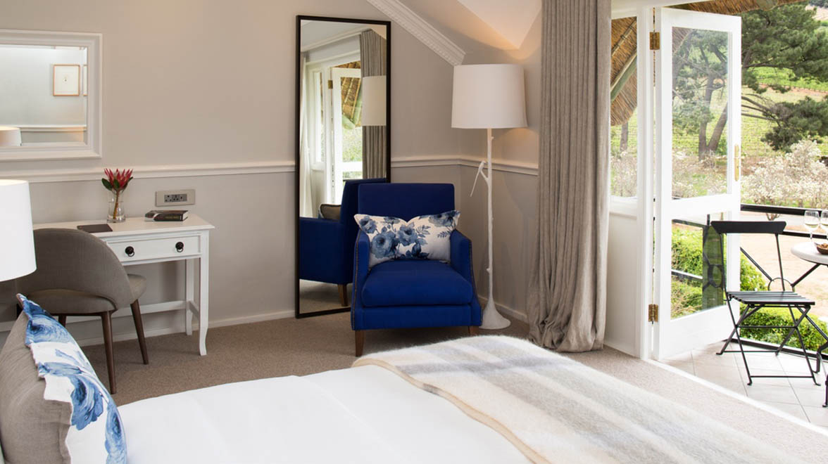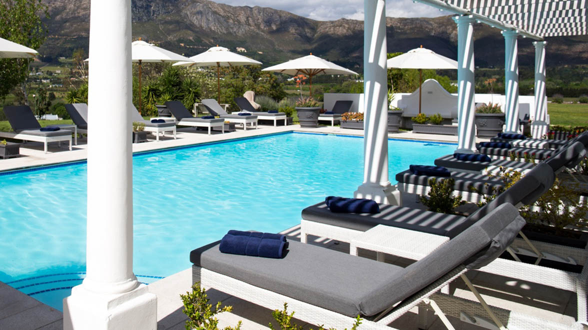 There are just 26 rooms and suites, plus a four bedroom villa, decorated in a chic and contemporary style with plenty of natural light and splashes of colour. Rooms are all well appointed with air-conditioning, a king size bed, flat screen TV, BOSE bluetooth speaker system, Nespresso coffee machine and complimentary mini bar. Each of the room categories has a private terrace and is named after a variety of grape - choose between Shiraz Rooms with courtyard or valley views or the spacious Merlot and Cabernet rooms, each with fabulous views of the surrounding valleys. The four Pinotage Suites and two Cap Classique Suites each include their own separate lounge and the Cap Classique Suites also have their own plunge pool. The luxurious four bedroom Manor House Villa is ideally suited to families or large groups, accommodating up to eight adults and six children, with its own kitchen, two pools and a gym.