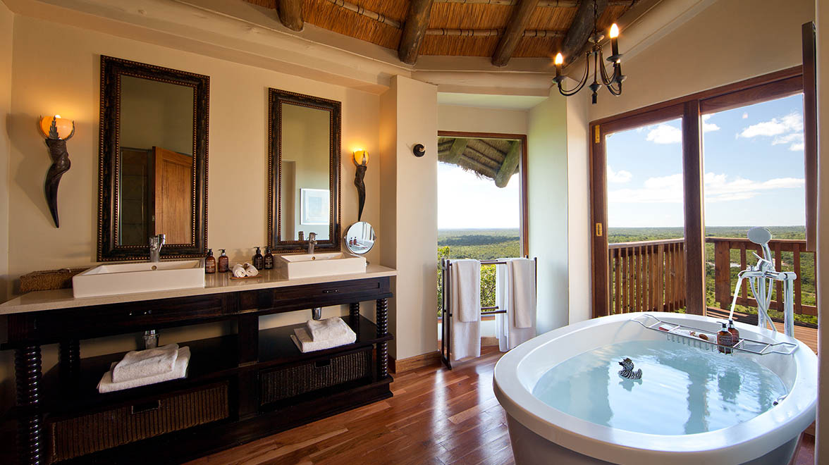 There are 20 air-conditioned rooms and suites, spread between Rock, Cliff and Safari Lodges. Rooms and suites feature a complimentary mini bar, tea/coffee making facilities, Bose or iPod station, ceiling fans, mosquito nets, Africology toiletries and complimentary WiFi. Rock Lodge sits on a hilltop with spectacular views of the bushveld and Drakensburg Mountains, and has eight rooms, some with a private infinity-edged plunge pool. The luxurious Cliff Lodge is just a short walk away from the main house at Rock Lodge and has two suites, a one-bedroom suite and a two-bedroom suite, each with a large viewing deck, including an infinity-edge plunge pool, and if both suites are booked for exclusive use, your own chef and private game drive vehicle is included. Children all of all ages are welcomed at Rock Lodge, and Cliff Lodge is ideal for families. Safari Lodge is located on the banks of a dry riverbed, and many of the suites here are connected by swing bridges. Our favourite is the Treehouse Suite, which has an impressive private deck with views over the Xikwenga Dam; keep your camera at the ready, as you’re likely to spot an elephant pausing for a drink.